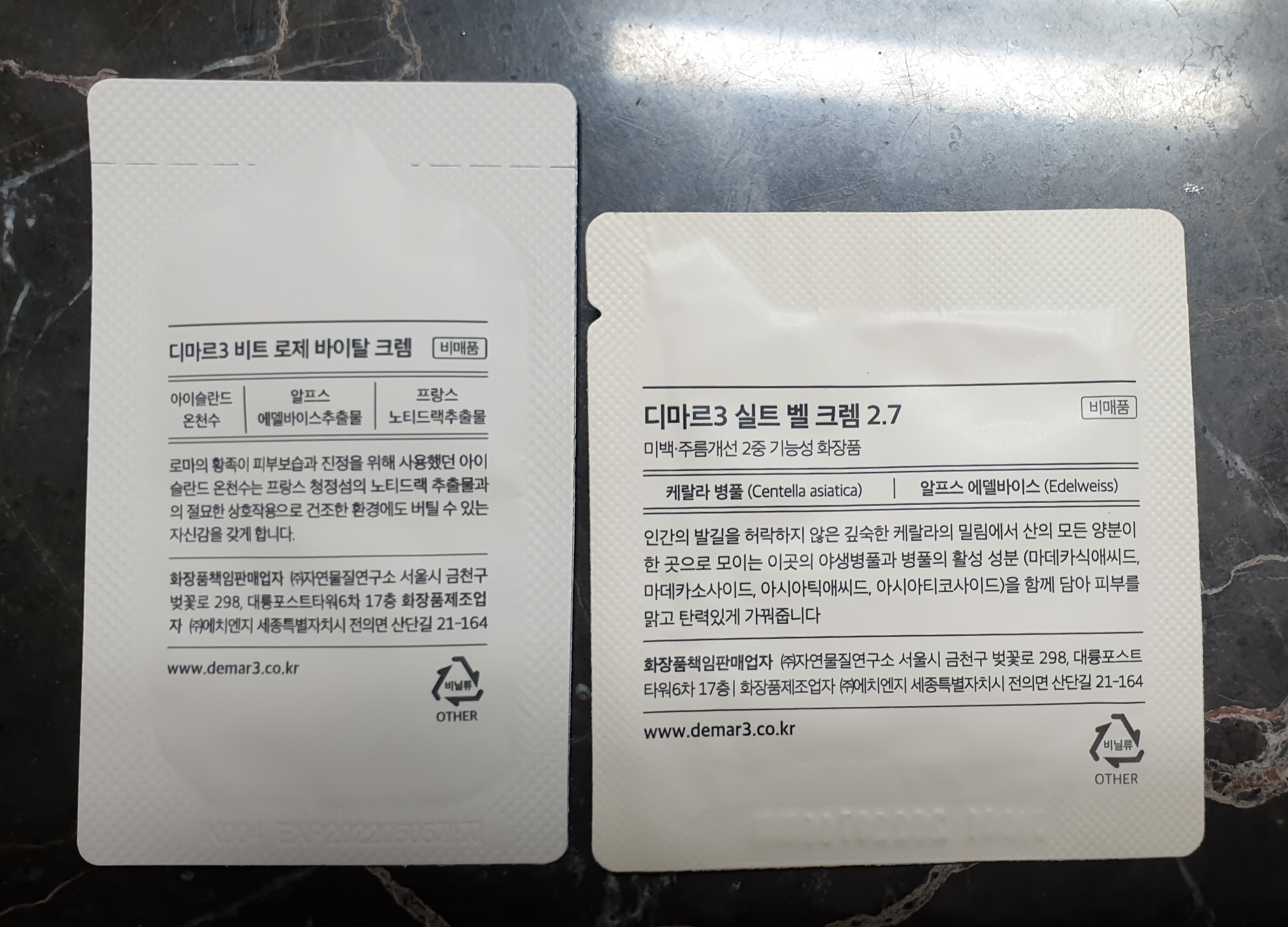 병풀추출물, 글리세린, 메틸프로판다이올, 글리세레스-25, 정제수, 1,2- 산다이을, 나이아신아마이드, 에탄올, 베타인, 트레할로오스, 무화과추출물, 소엽 맥문동뿌리추출물, 월귤잎추출물, 오레가노잎추출물, 편백잎추출물, 흰버드나무 껍질추출물, 락토바실러스 콩발효추출물, 쇠비름추출물, 육계나무껍질추출물, 황 금추출물, 에델바이스추출물, 노티드랙추출물, 엘더꽃추출물, 당아욱추출물, 레 몬밤잎추출물, 레이디스맨들추출물, 서양톱풀추출물, 스피드웰추출물, 페루기네 움철쭉추출물, 페퍼민트잎추출물, 황산앵초추출물, 하이드로제네이티드레시틴, 소듐하이알루로네이트, 폴리글리세릴-10라우레이트, 판테놀, 카보머, 트로메타민, 셀룰로오스검, 글리세릴폴리메타크릴레이트, 아데노신, 다이소듐이디티에이, 카 라멜, 세라마이드엔피, 프로필렌글라이콜, 아라비아고무나무검, 말토덱스트린, 시트릭애씨드, 화산재, 소듐하이드록사이드, 피토스핑고신, 향료, 펜틸렌글라이콜, 카프릴릴글라이콜, 에틸헥실글리세린, 소듐벤조에이트, 포타슘솔베이트, 리날룰