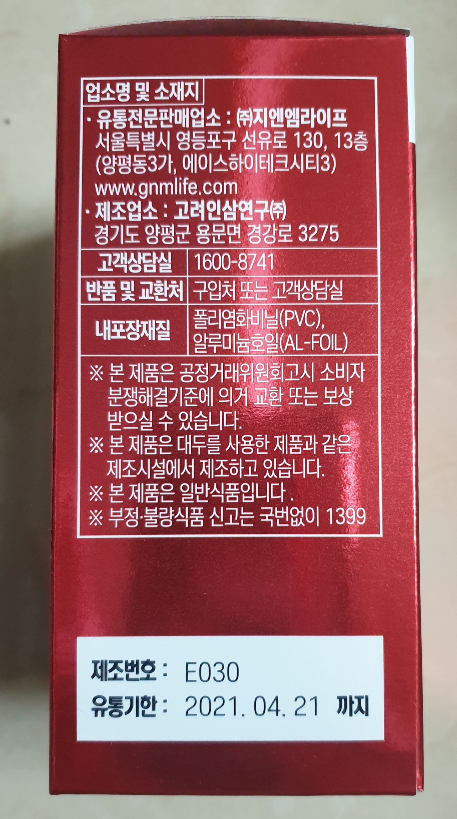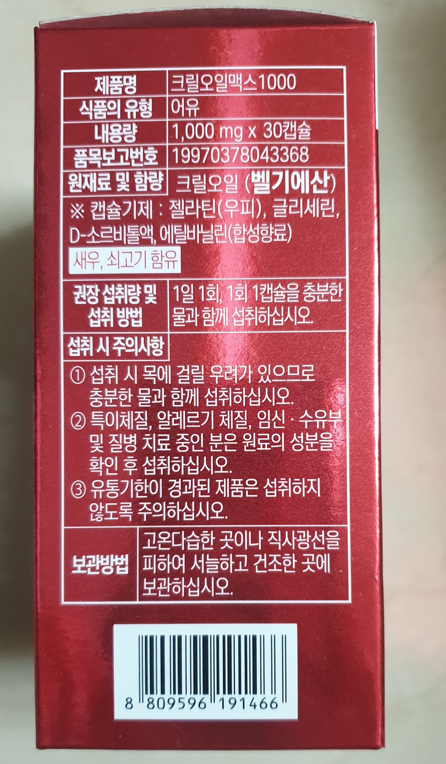 ※ 캡슐기제 : 젤라틴(우피), 글리세린