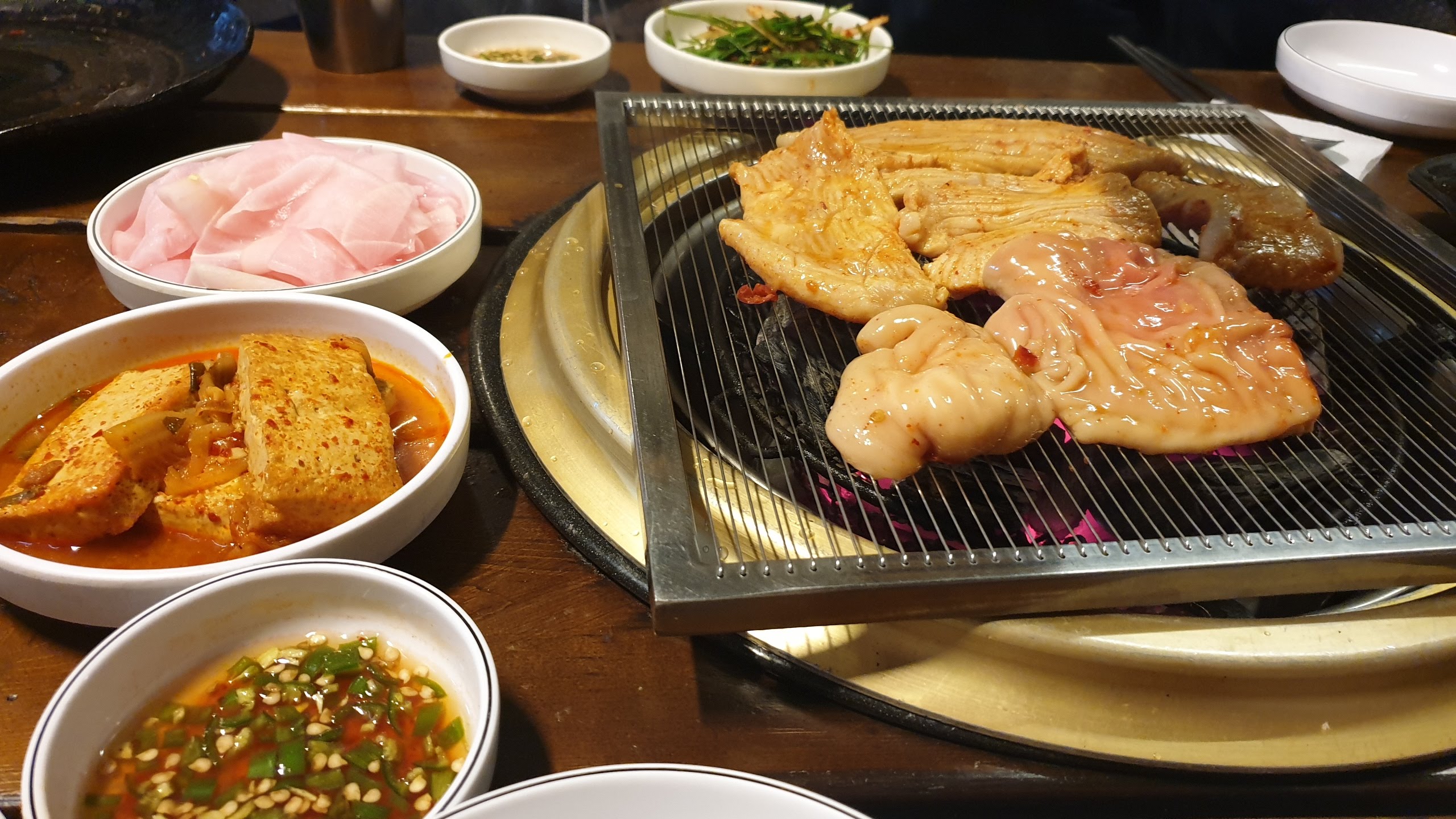 숯불에 양, 대창, 닭갈비를