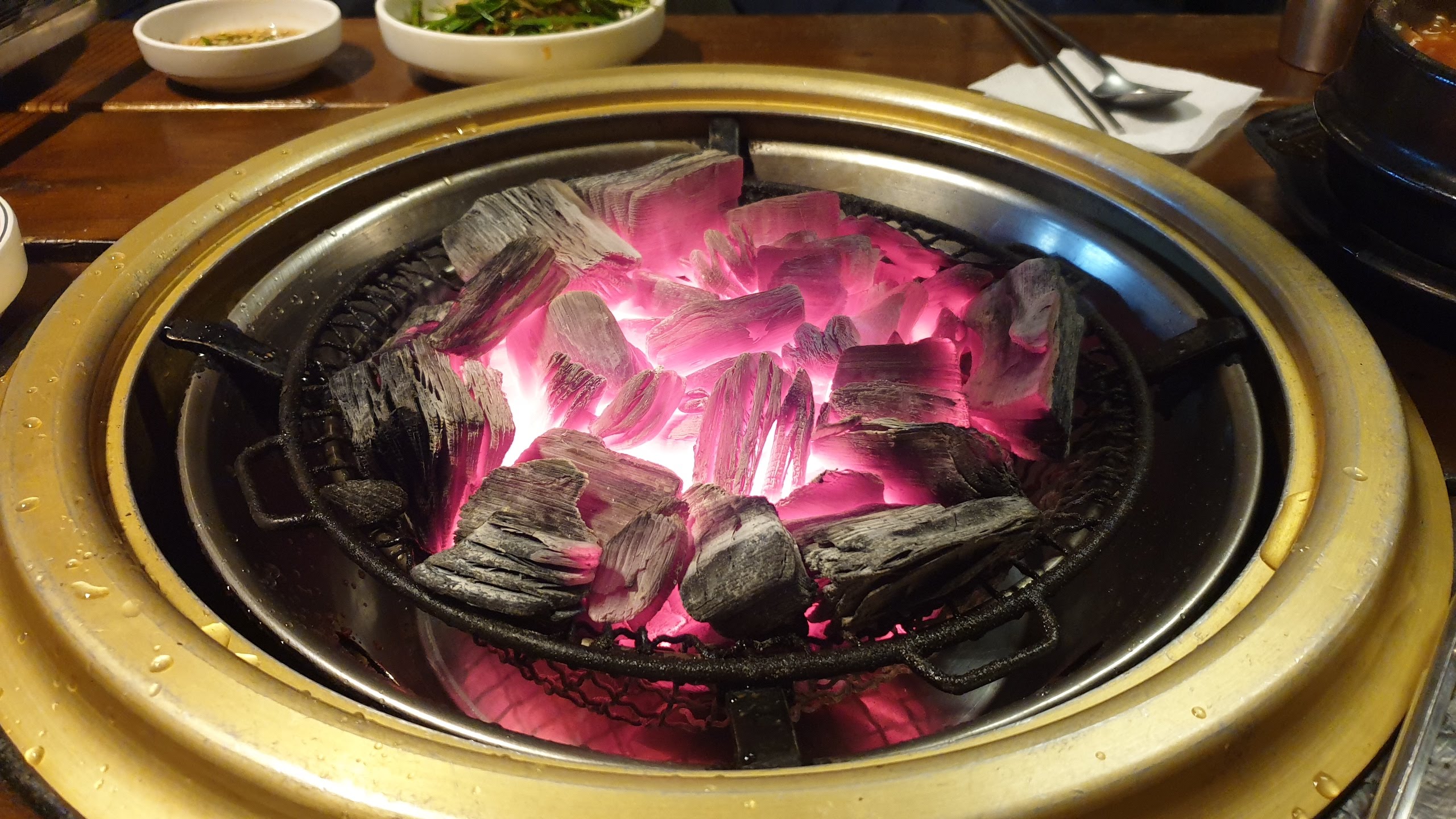 이렇게 화력 좋은 참숯불이 준비되고요.